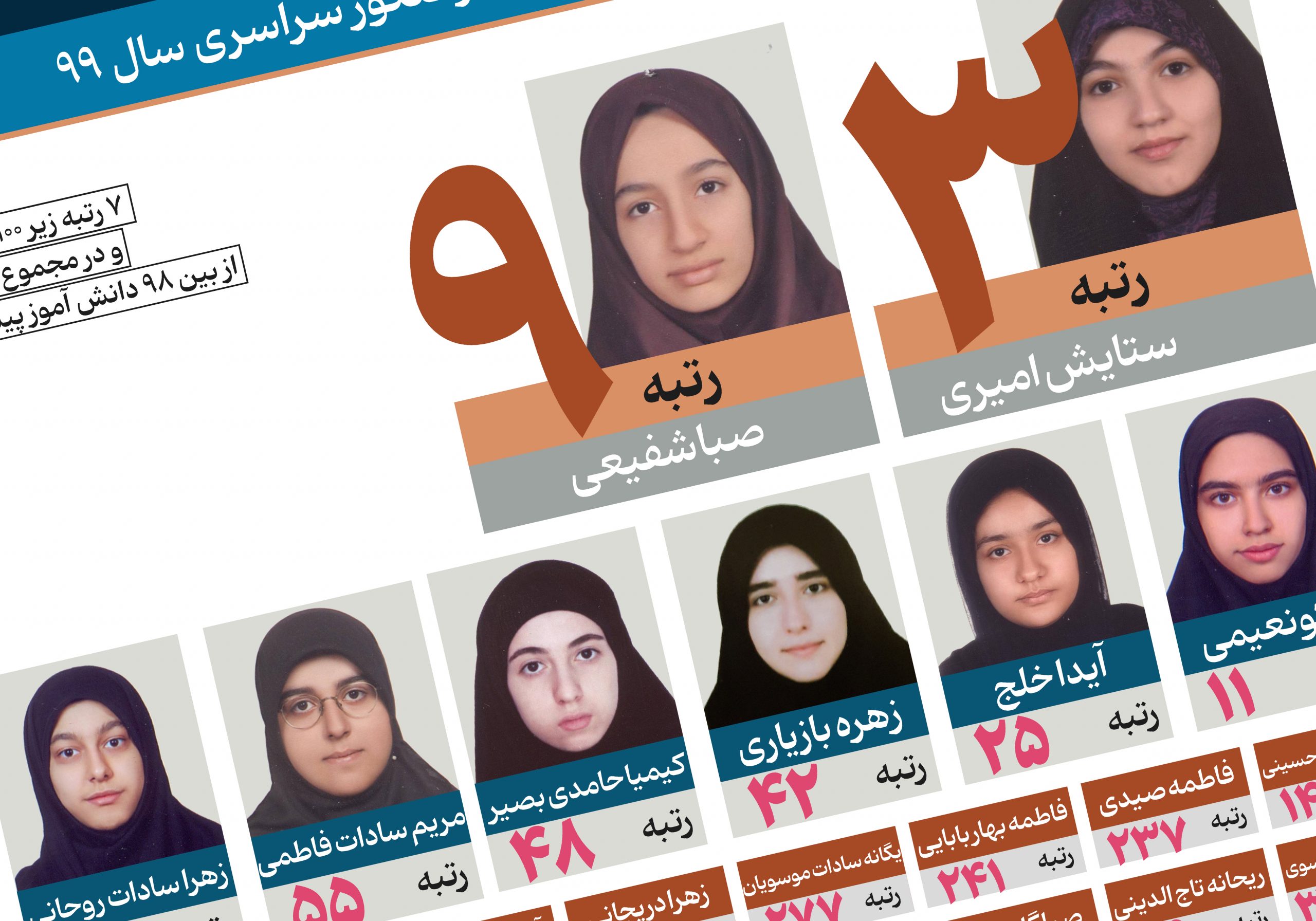 در مجموع 8 رتبه ی زیر 100 ، 22 رتبه ی زیر 500 و 33 رتبه ی زیر 1000